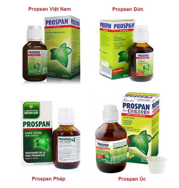 Prospan và Prospan Forte của Công ty Cổ phần Tập đoàn Dược phẩm và Thương mại Sohaco – Việt Nam. Thuốc chứa cao khô lá thường xuân (Hederae helicis folii extractum siccum) chiết bằng ethanol 30% theo tỷ lệ (5–7,5):1, có tác dụng long đờm, giãn phế quản và giảm ho. Được sử dụng để điều trị triệu chứng ho trong các bệnh viêm đường hô hấp cấp và viêm phế quản mạn.
