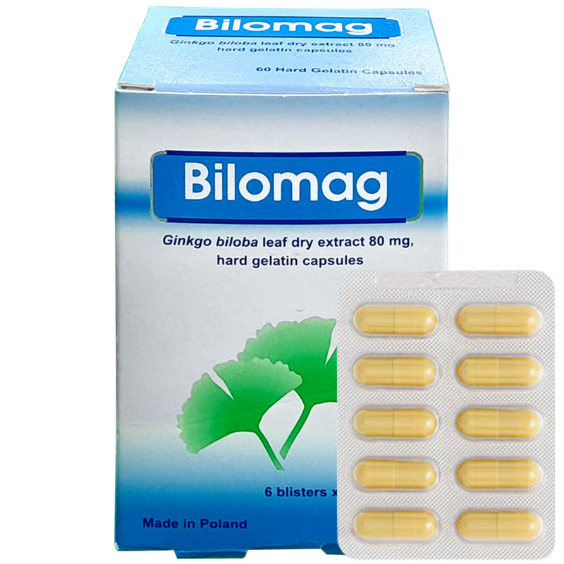 Bilomag của Công ty Natur Produkt Pharma – Ba Lan. Thuốc chứa Ginkgo biloba, Magnesium, Vitamin B6, thuộc nhóm thuốc bổ não, dùng để cải thiện tuần hoàn não, giảm suy giảm trí nhớ, hoa mắt, chóng mặt.