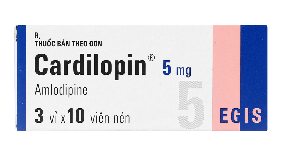 Cardilopin 5mg của Công ty Egis – Hungary. Thuốc chứa Amlodipine 5mg. Dùng điều trị tăng huyết áp và cơn đau thắt ngực ổn định hoặc do co thắt.